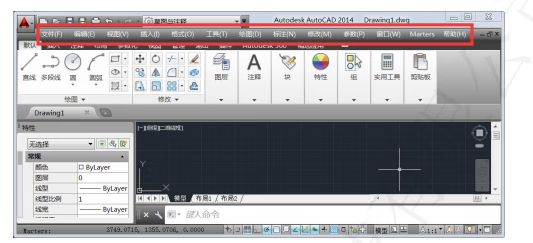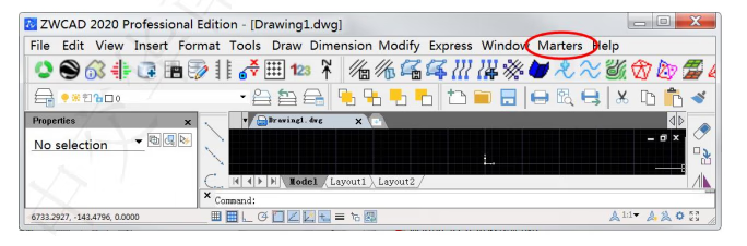 2、中望 CAD加载:中望 CAD 安装后,切换到经典模式(主界面右下角 ),切换完之后要重启 CAD,就会自动加载菜单栏,Marters 菜单自动出现,如下图: